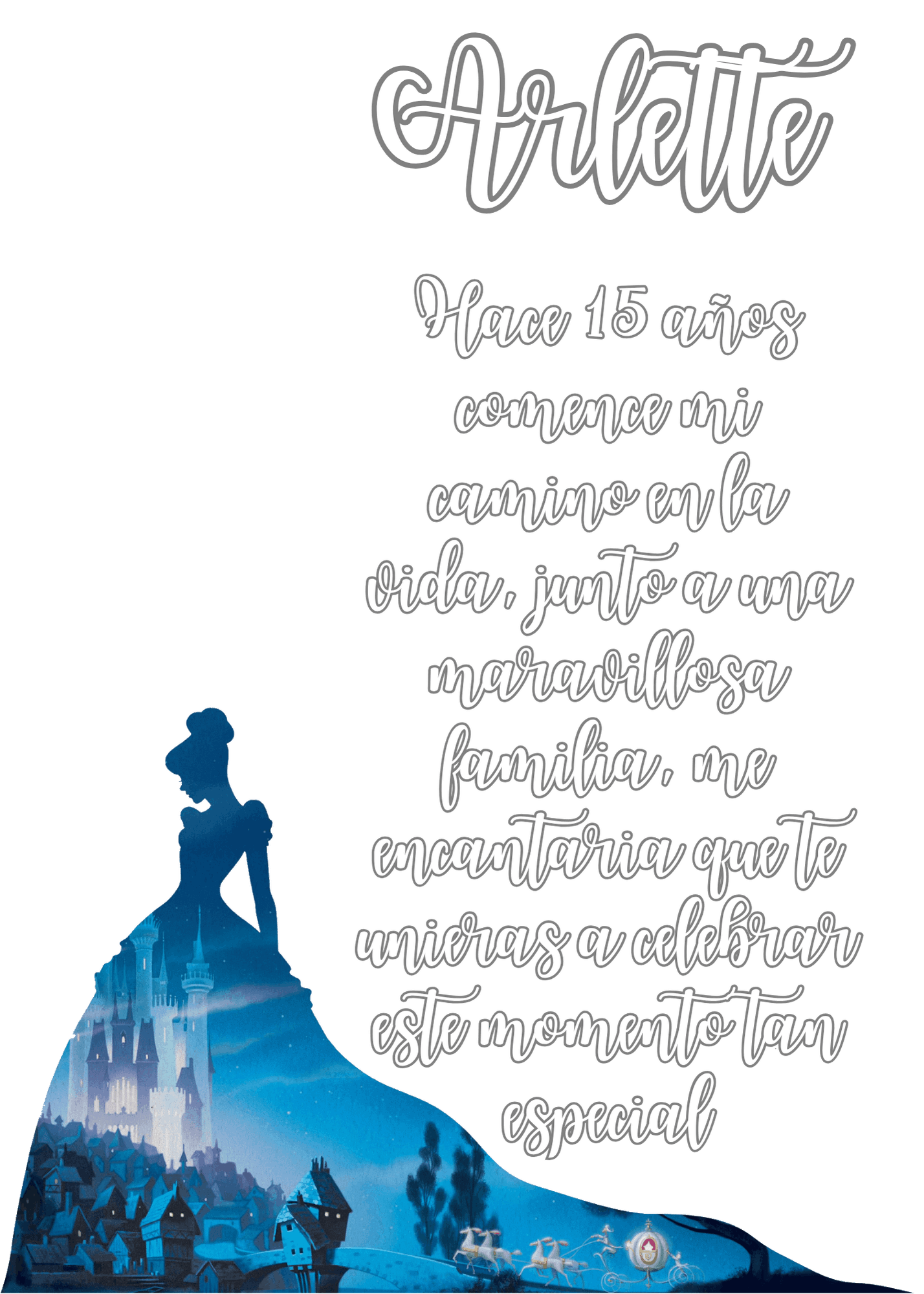 Tenemos el honor de invitarlos a usted y a su apreciable familia a la celebración de mis quince años.